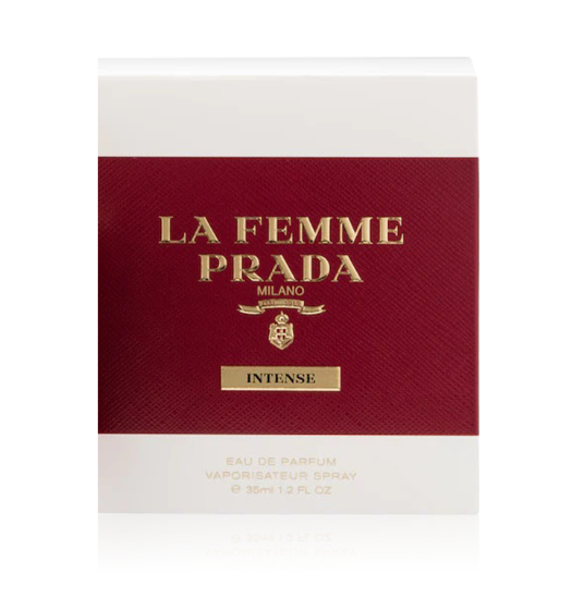 لا فام إنتنس هو أحد عطور مجموعة برادا الكلاسيكية. يحتوي العطر على خلاصة زهرة بلوميرا والتوابل وشمع العسل ومسك الروم. هذا العطر شرقي تقريباً، ويفيض بجاذبية خلاّبة. أما كثافة العطر فتتحقق من خلال تعظيم نفحات التوبيروز، اليلانغ يلانغ والباتشولي في قلب تركيبته.