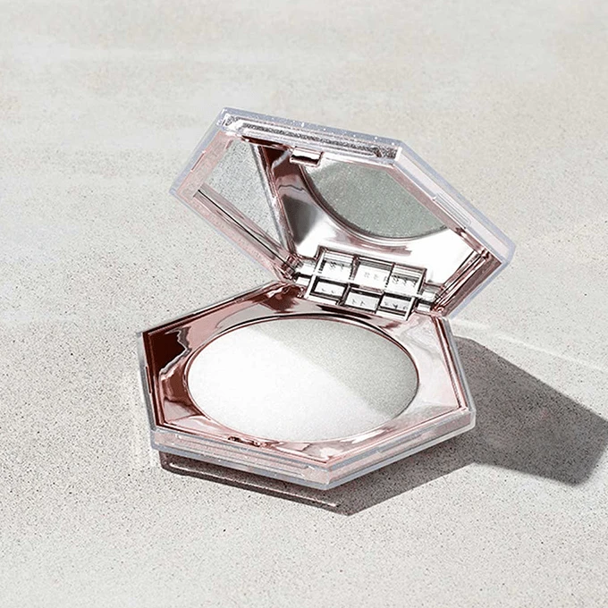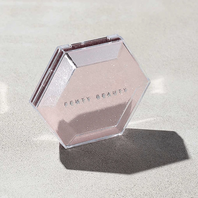 هايلايتر فريد من نوعه مشبع بجزيئات الألماس يغمر الوجه والجسم ببريق ثلاثي الأبعاد. تركيبة تغطي الوجه والجسم بلون زهري أنيق وهي الإطلالة التي تشتهر بها ريانا. تأتي في تصميم أنيق وجميل في عبوة متعددة الأوجه تشبه الجوهرة. بلمعه بلاتينية نقية لإضافة لمسة نه
