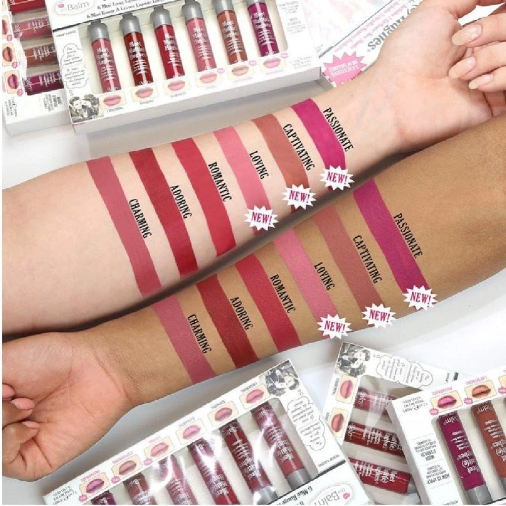 أكملي طلتك الأنيقة مع مجموعة أحمر الشفاه من ذا بالم بألوان متعددة ومميزة. تركيبة سائلة كثيفة اللون كما أنها تجف بوقت قياسي وتبقى لوقت طويل. تمنحك لون مطفي جذاب لا ينسى كما أنه لا يتلطخ وسهل الاستخدام. لمسة نهائية مطفية. تركيبة مقاومة للتلطخ. قوام سائل يدوم لوقت طويل. المعلومات: 6 ألوان: (تشارمينج , ادورينج , رومانتيك , لوفينج , كابتفيتنج, باشينت). المكونات: ميكا، بولي إيثيلين، نيتريد البورون، متعدد رباعي فلورو الإيثيلين، أيزوإيكوسان، سيليكا، كابريليك/كابريك ثلاثي الجليسريد، شمع صناعي، بولي إيزوبوتين، كاولين، ديهيدرواسيتات الصوديوم، ثنائي الميثيكون، ليسيثين مهدرج.